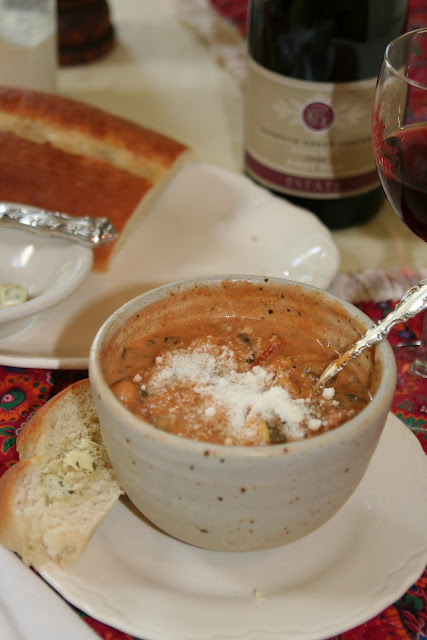 To serve, grind some pepper over the soup, pass additional Parmesan cheese, and enjoy with homemade bread and a glass of wine!